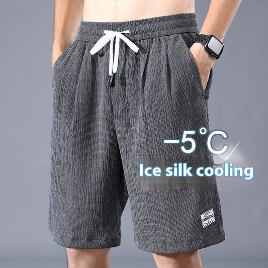 Summer Ice Silk Shorts Men's Thin Sports Quick-drying Knee Length Pants