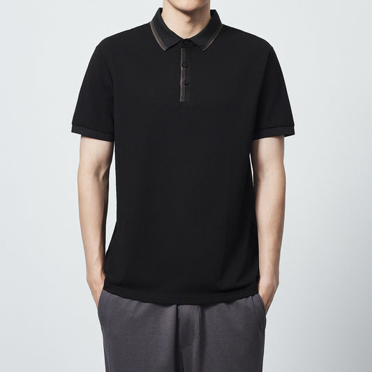 Combed Cotton Mercerized Beaded Polo Shirt Striped T-shirt In Contrast Color
