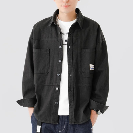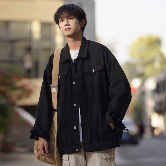 Men's Loose-fitting Workwear Jacket Lapel Denim Jacket