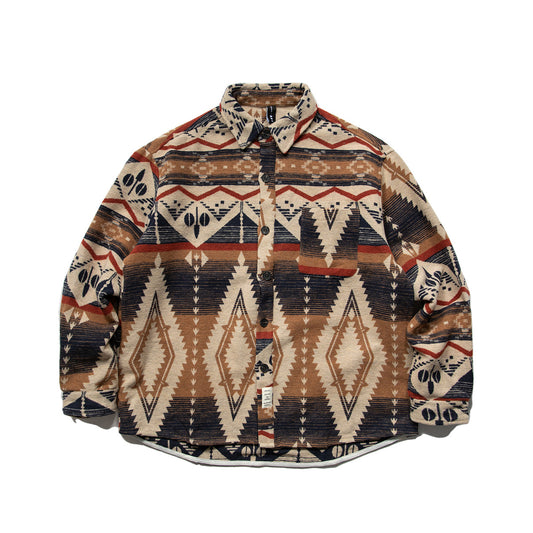 Japanese-style Retro Ethnic Print Woolen Shirt