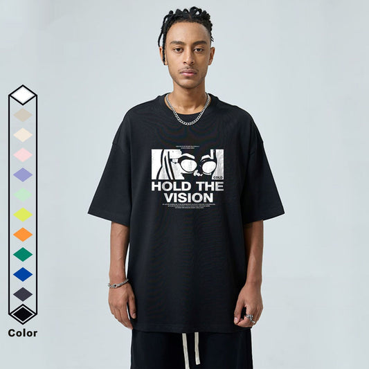 Creative Liquefied Letter Short Sleeve American Heavy Pure Cotton Loose T-shirt