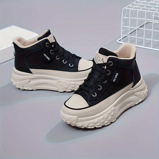 Women's Platform Sneakers, Fashion Round Toe Lace Up High Top Trainers, Comfy Soft Sole Walking Shoes