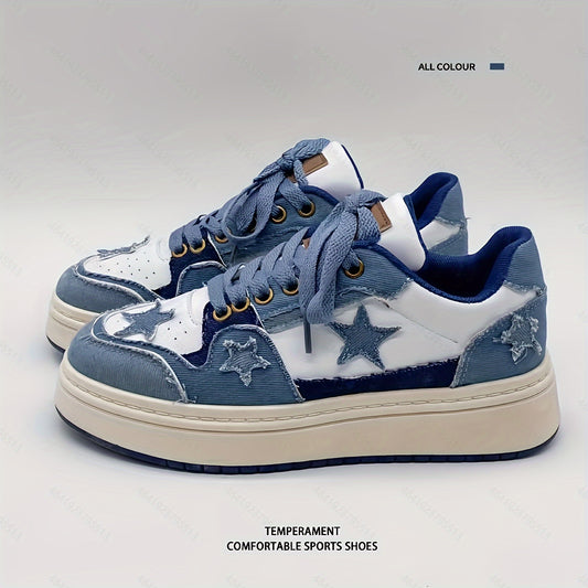 Women's Denim Skate Shoes, Fashion Round Toe Low Top Sports Shoes, Versatile Outdoor Sneakers