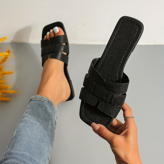 Women's Flat Square Toe Slippers, Fashion Open Toe Slides Shoes, Casual Outdoor Slippers