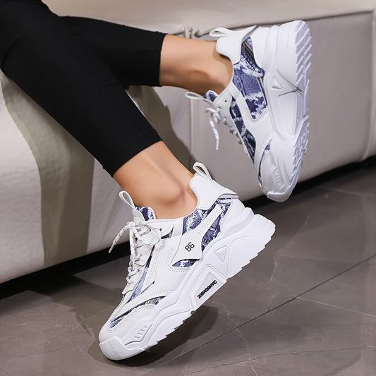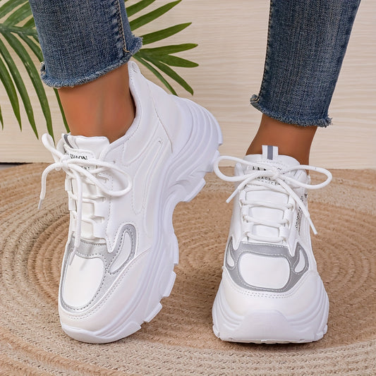 Women's Chunky Sneakers, Trendy Hight Increasing Lace Up Walking Trainers, All-Match Low Top Shoes