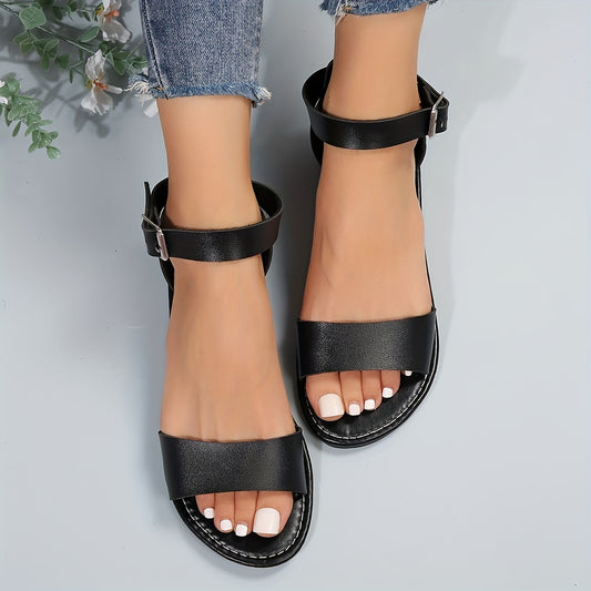 Women's Solid Color Flat Sandals, Ankle Buckle Strap Lightweight Casual Shoes, Versatile Summer Beach Shoes