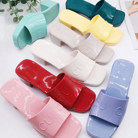 Cross-border 2021 new G home slippers square head with jelly slippers window thick with one-character furniture