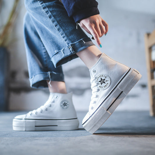 Thick bottom increase canvas shoes female 2021 spring new Korean white shoes casual trend high help students women's shoes 8515