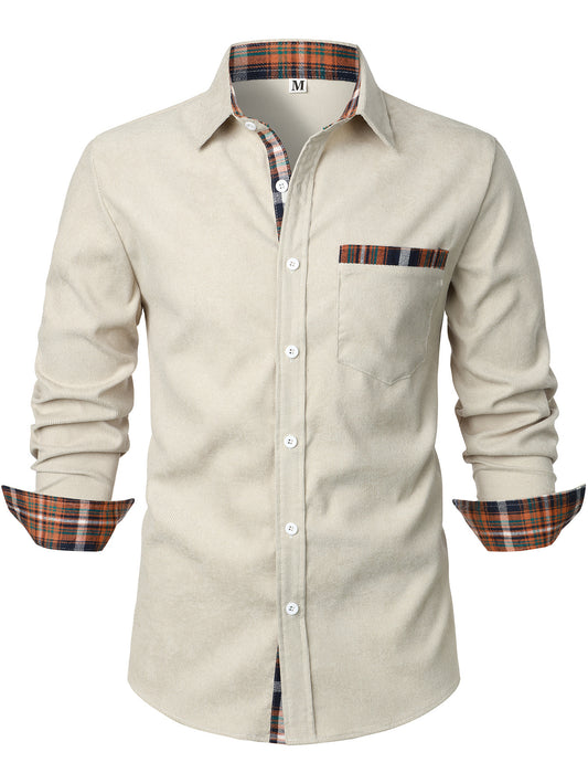 Men's Corduroy Red Plaid Plaid Casual Long Sleeve