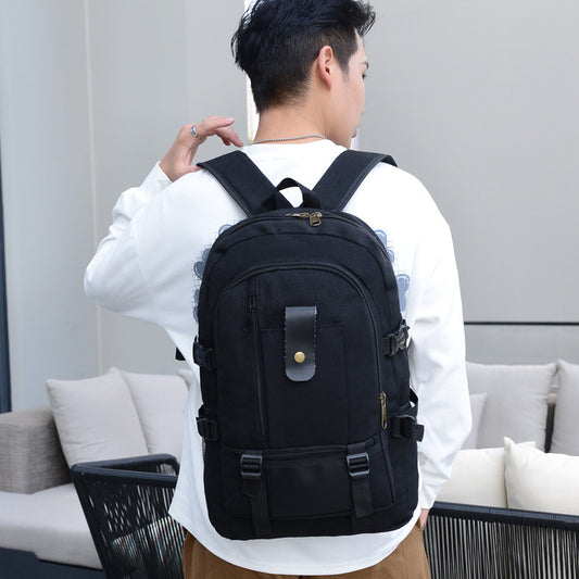 Korean men's backpack fashion trend casual canvas backpack high school college student bag computer travel bag