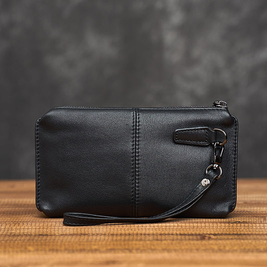 Men's Leather Phone Bag Eyelet Buckle Large Size Waterproof