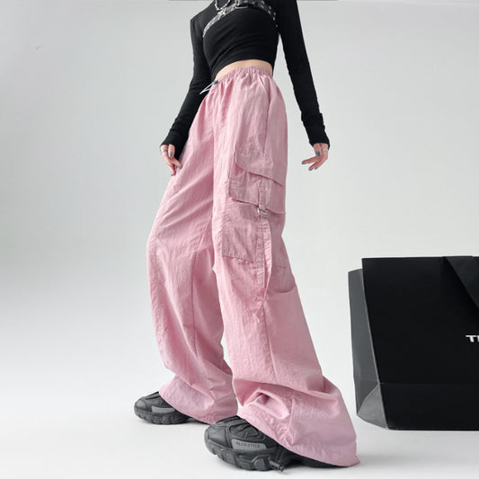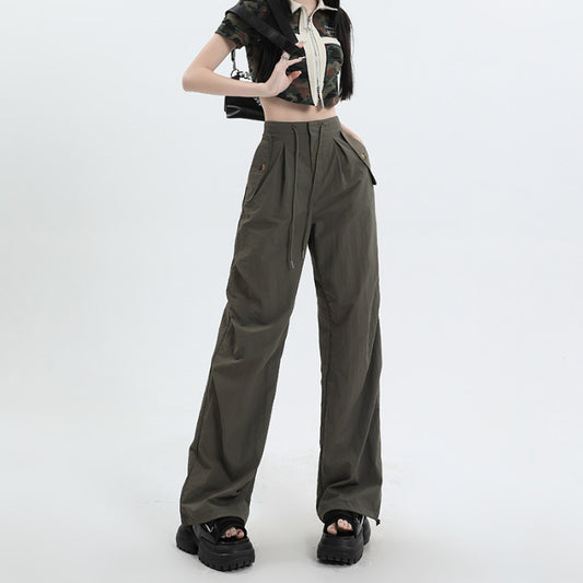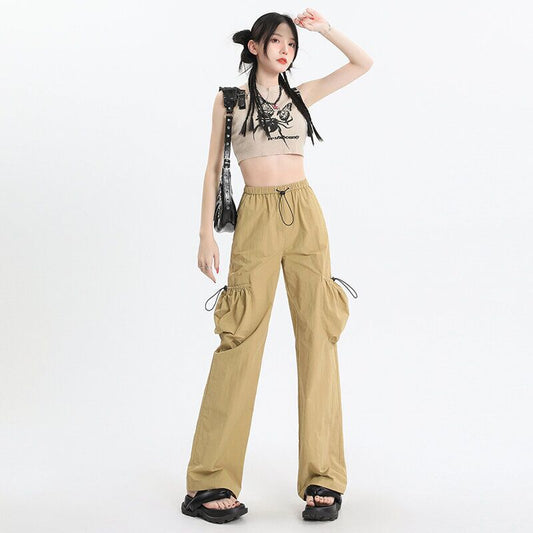 American High Street Cool Drawstring Lace-up Casual High Waist Wide Leg Pants