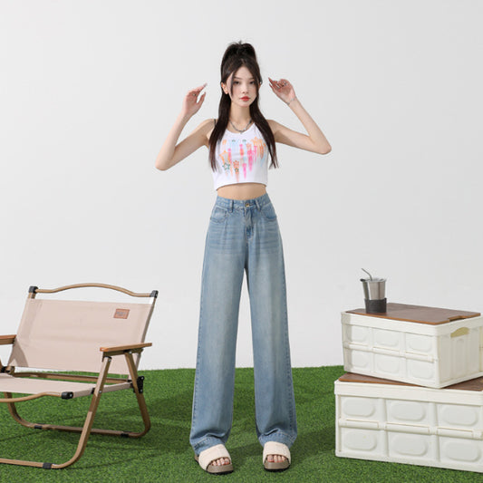 Thin Soft Jeans Women's Summer Thin Straight High Waist