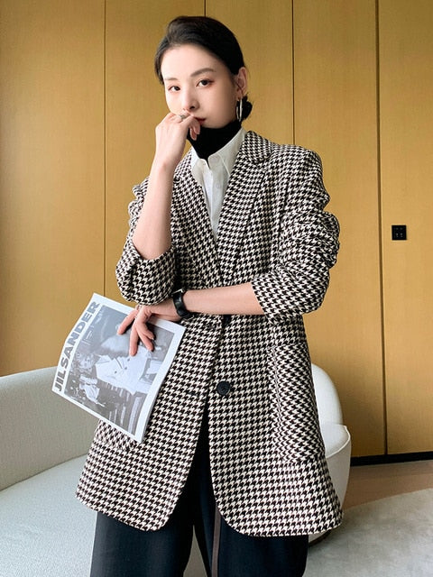 Houndstooth woolen blazer women's short section 2020 autumn and winter new temperament all-match thick plaid suit