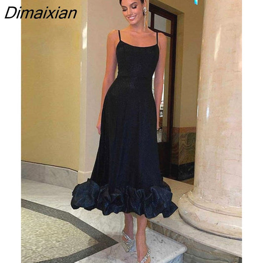 Dimaixian Sexy Solid Ruffle Hem Sling Long Dress Women Fashion Sleeveless A Line Dresses 2023 New Spring Lady Evening Party Vestido