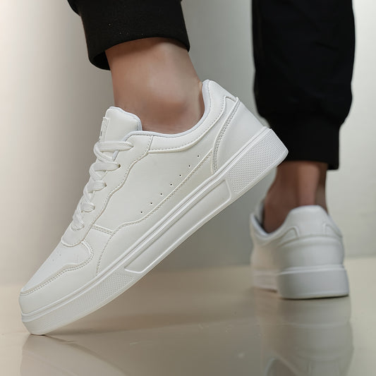 Men's Trendy Solid Skate Shoes, Comfy Non Slip Lace Up Casual Sneakers For Men's Outdoor Activities