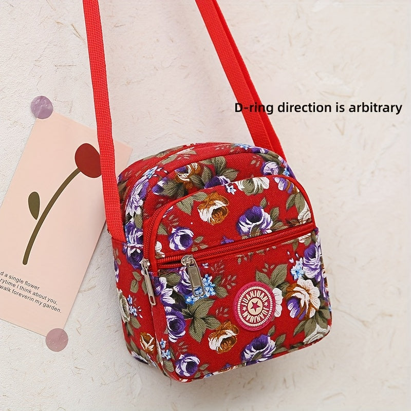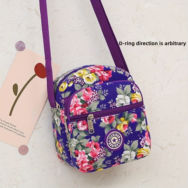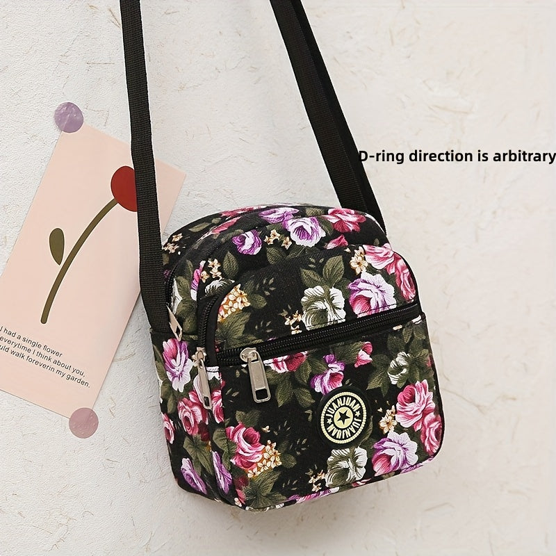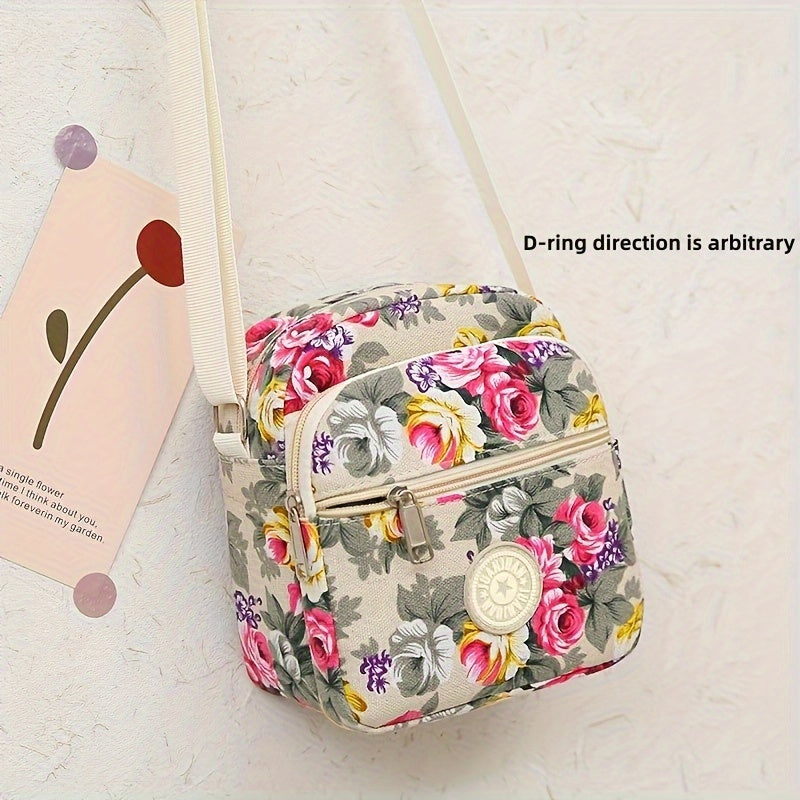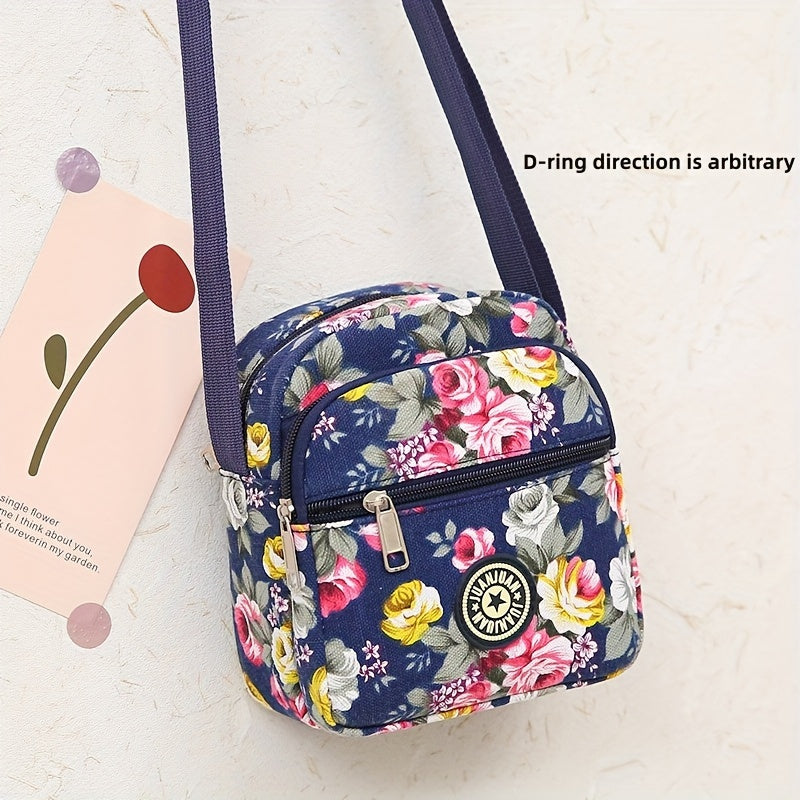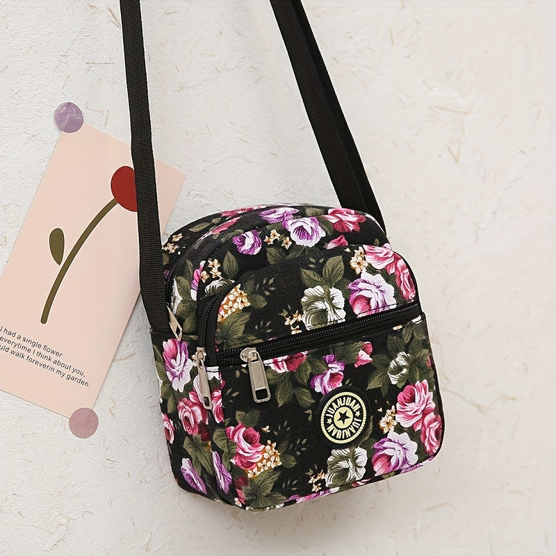 Vintage Flower Pattern Shoulder Bag, Classic Zipper Crossbody Bag, Women's All-Match Phone Bag