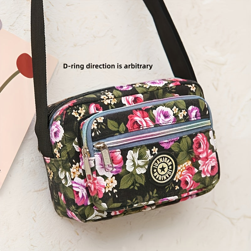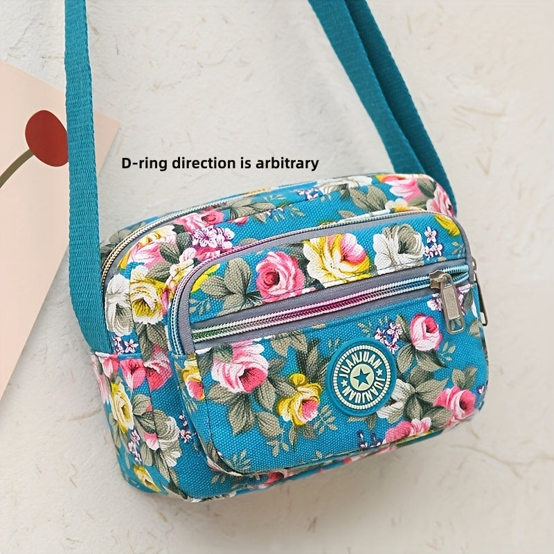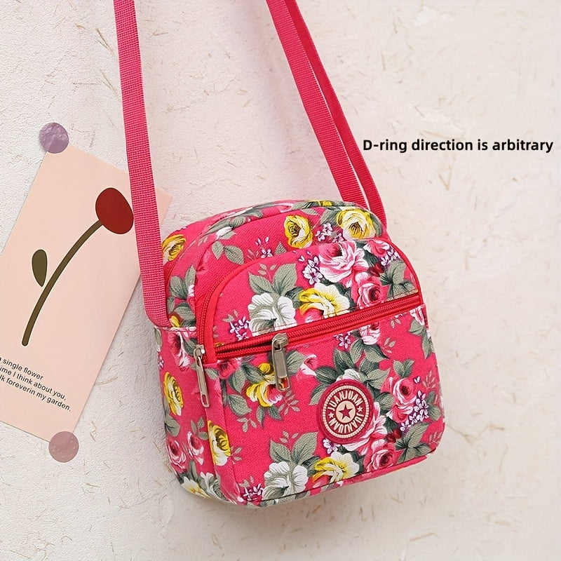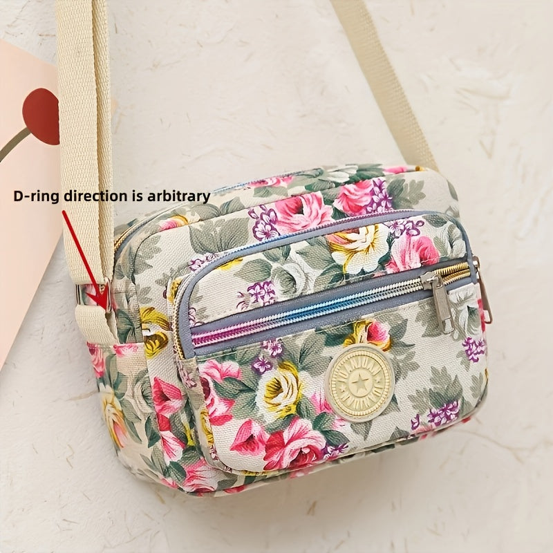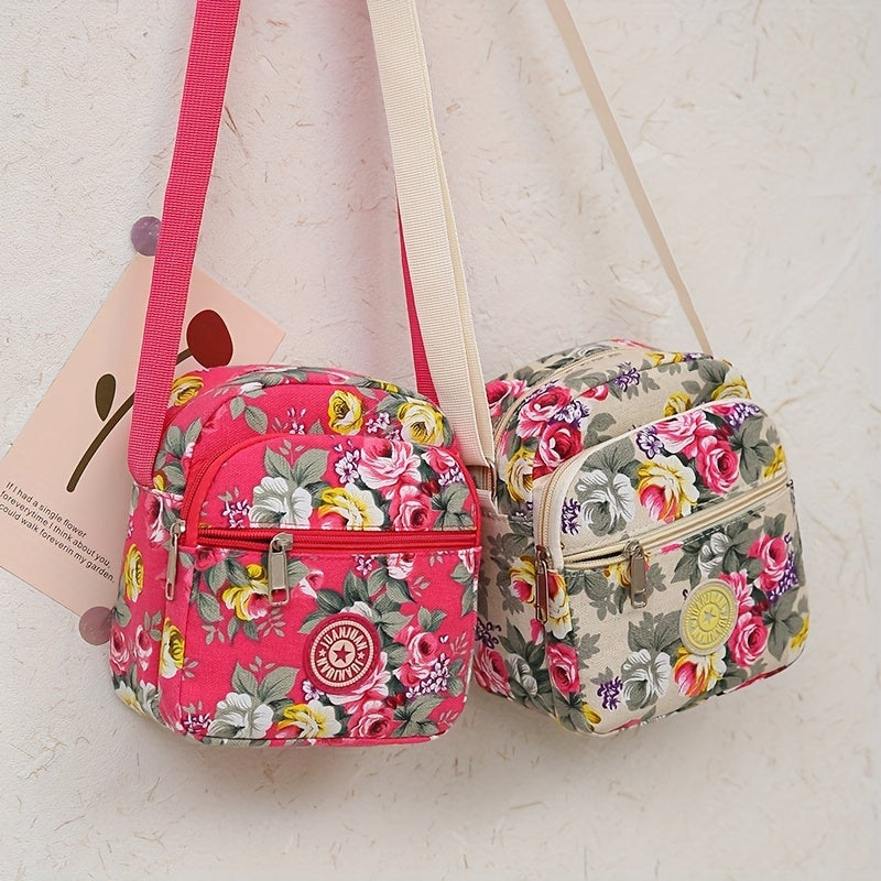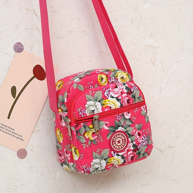 Vintage Flower Pattern Shoulder Bag, Classic Zipper Crossbody Bag, Women's All-Match Phone Bag