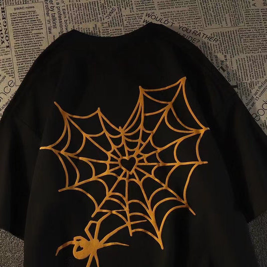 100 Cotton Summer Fashion Brand Letters Spider Web Printed Short Sleeve T-shirt Young And Older Boys And Girls Clothes Children's Clothing Kids