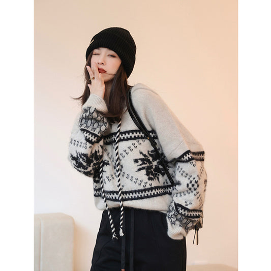 100 Pure Wool Sweater Thicken Lazy Style Base Hooded Sweater