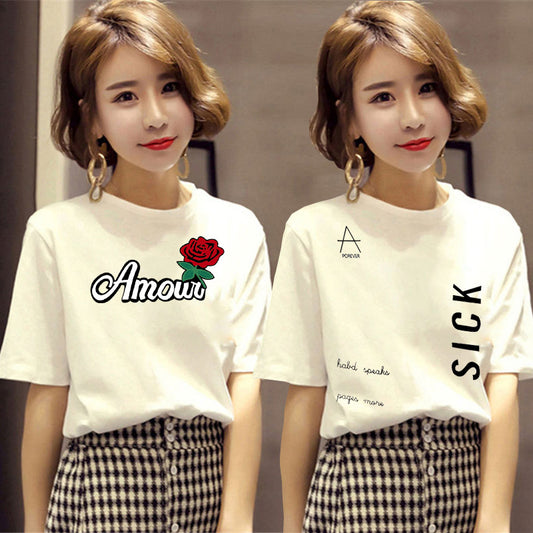 170 grams double mill 2021 summer new upper clothes white short-sleeved T-shirt women's loose Korean version of half sleeve loose