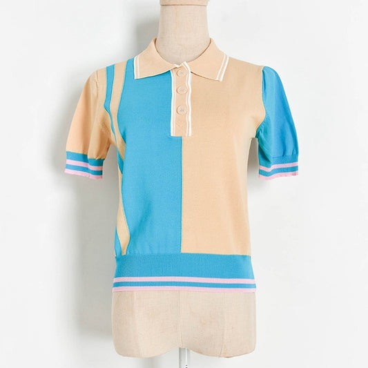 2020 summer thin new candy color contrast color PL lacquered sweater short-sleeved women's X20504
