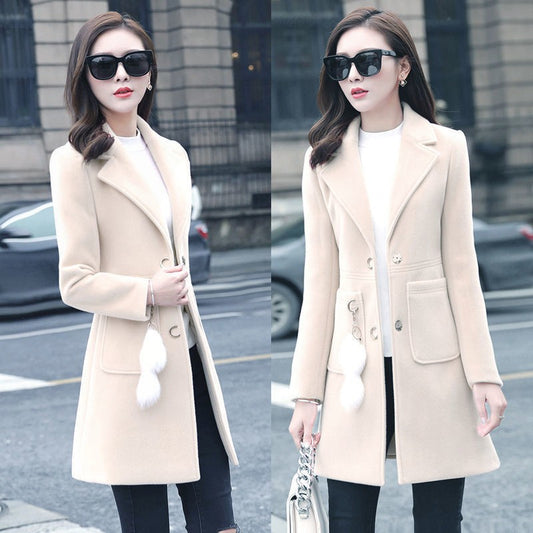 2020 wool outer set female long section Korean version of the new autumn and winter Ni women's small child popular woolen big clothes thick