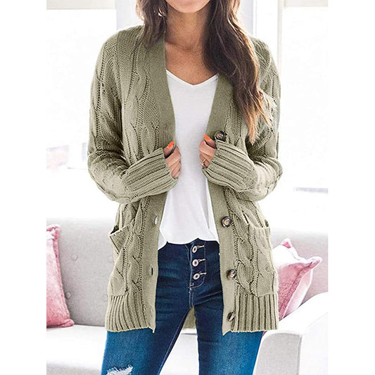 2021 Amazon autumn and winter new cardigan sweater women Europe and America V-neck single-breasted long-sleeved sweater jacket