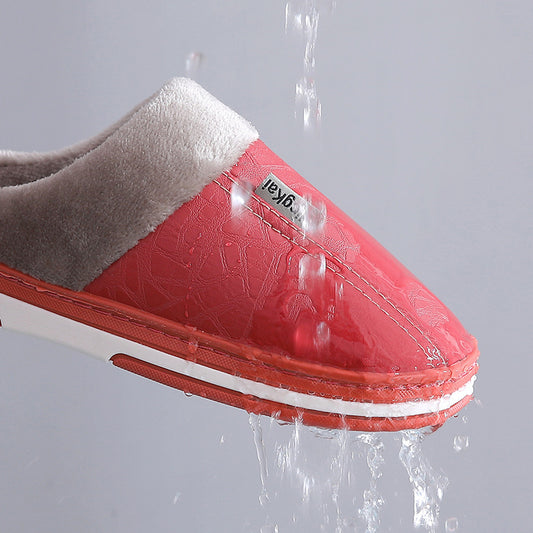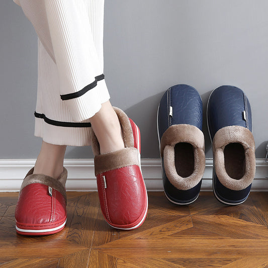 2021 autumn and winter new home waterproof pu cotton slippers couple indoor plush cotton slippers female month slippers