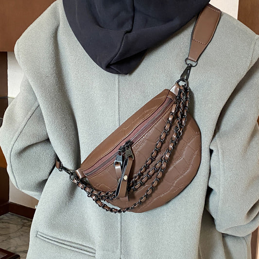 Retro bag new autumn and winter women's bag wide shoulder strap chain chest bag stone pattern waist bag casual small shoulder bag