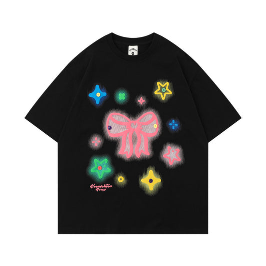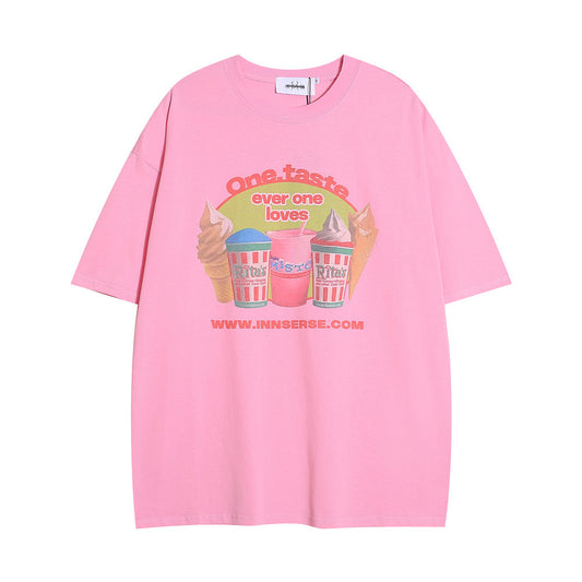 Small Collar Heavy Bottoming Shirt American High Street Solid Color Round Neck Short Sleeves