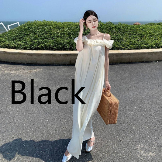 French Tea Break Strap Ruffled Off-shoulder Temperament Long Dress