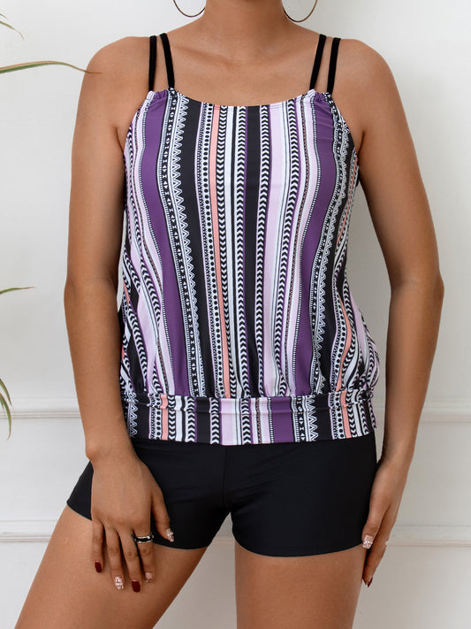 Women's Plus Size Printed High Waist Conservative Tangini Split Swimsuit