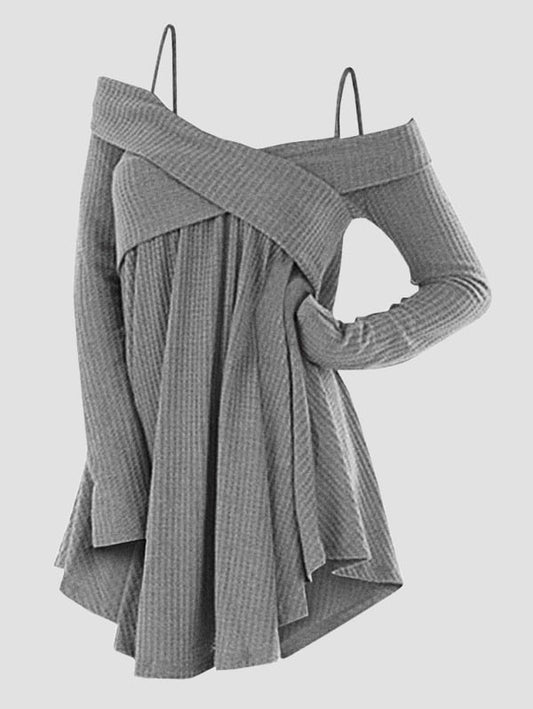 LANFUBEISI Plus Size Cold Shoulder Crisscross Tunic Sweater Casual Ladies Tops Women Sweaters Female Long Sleeve Pullover Jumpers