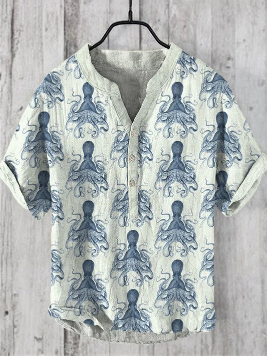 Retro Personalized Printed Casual Short-sleeved Linen Shirt Men's Loose Comfortable Shirt