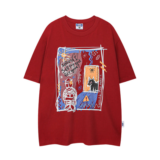 Women's American-style Retro Graffiti Couple Short-sleeved T-shirt