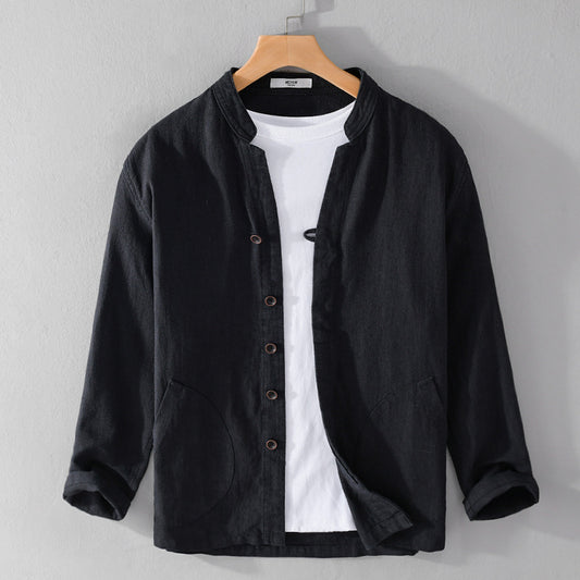 Ramie Long Sleeve Shirt Loose Casual Stand Collar National Style Linen Youth Simplicity