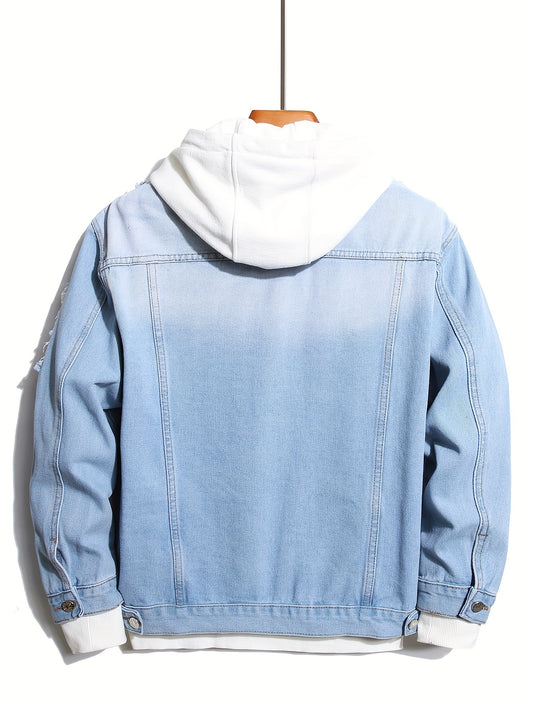 Men's Casual Patchwork Ripped Denim Jacket, Chic Street Style Jacket