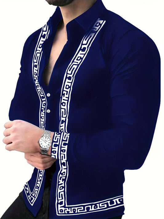 Plus Size Men's Floral Pattern Print Shirt Slim Fit Long Sleeve Shirt For Spring Fall Winter, Men's Clothing