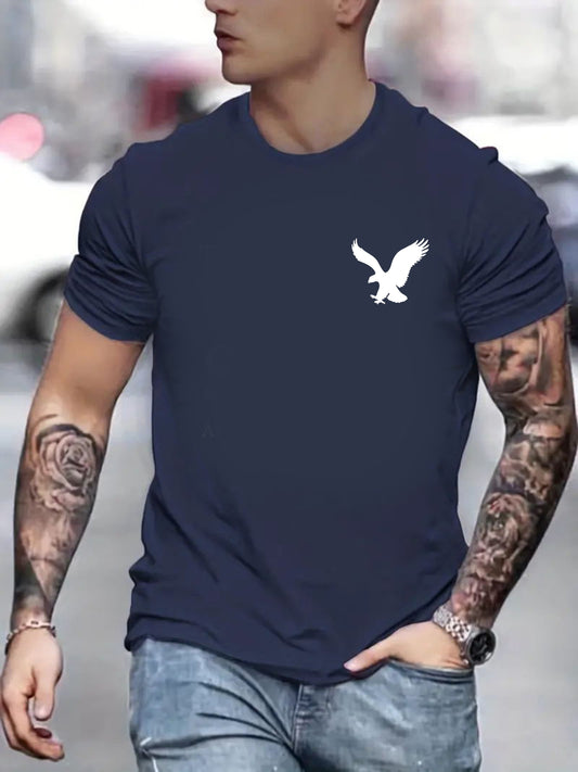 Stylish Eagle Pattern Print Men's Comfy Chic T-shirt, Graphic Tee Men's Summer Outdoor Clothes, Men's Clothing, Tops For Men, Gift For Men