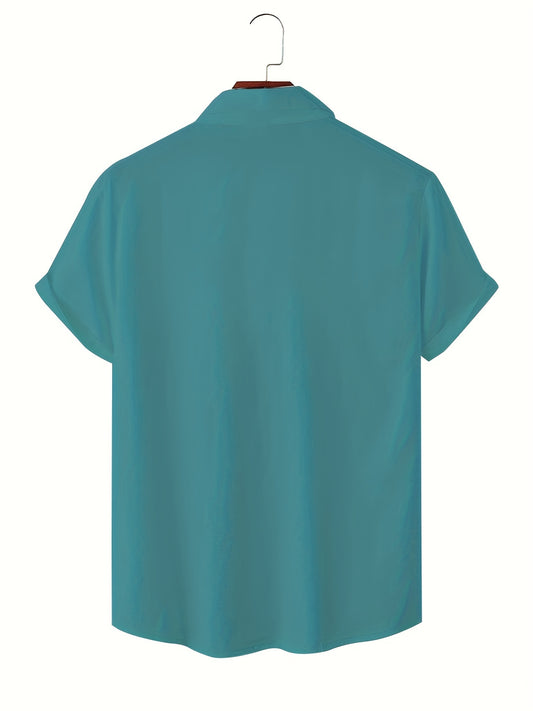 Men's Novelty Casual Flag Graphic 3D Print Short Sleeve Shirt, Trendy Lapel Neck Home Pajamas Top Men's Summer Outdoor Clothing