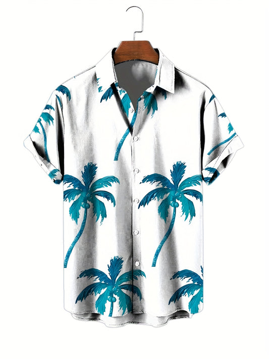 Men's Hawaiian Shirts, Coconut Palm 3D Print Fashion Short Sleeve V-neck Button Down Shirts, Men's Summer Clothes, Casual Graphic Tops, Men's Novelty Pajamas Tops