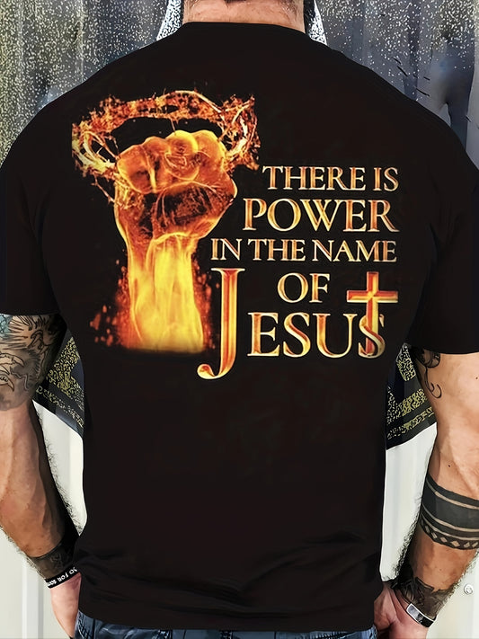 Fist & JESUS Letter Pattern, Men's Trendy Crew Neck Summer T-shirt, Gift For Christian