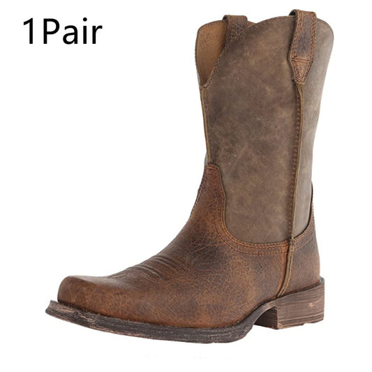 Mid-tube Low-heeled Retro Brown Men's All-match Casual Boots