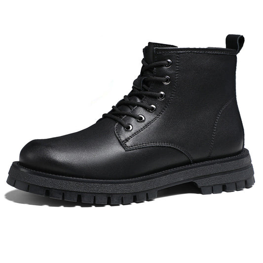 Men's British Style Fleece Mid-cut Leather Martin Boots