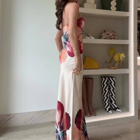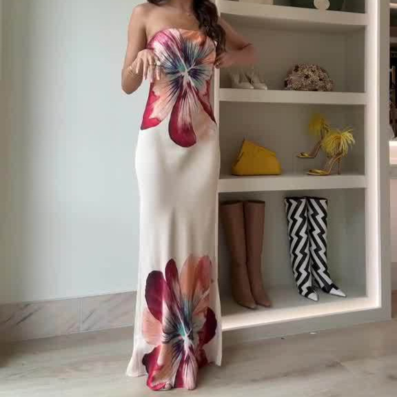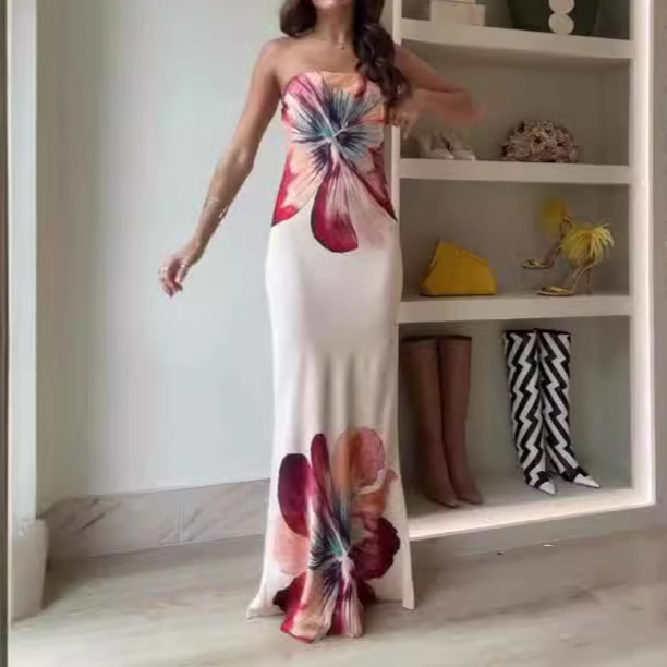Fashion Printed Tube Top Mid-length Slim Fit Dress