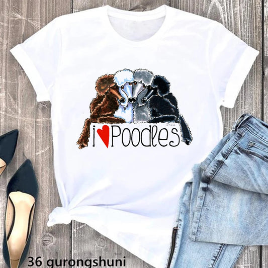 Cute Pink poodle animal print white t shirt women dog mom lover shirt Mothers day gift summer 2022 woman clothes custom tshirt