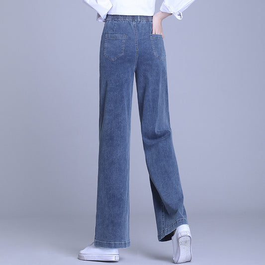 Spot new 2021 spring and summer wide legs pants pine tight waist slim casual wild jeans big pants children