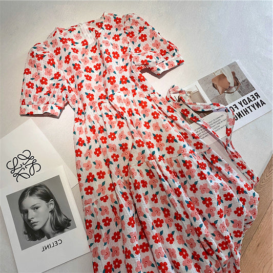 Crushed bubble sleeve dress 2021 summer new Korean version of loose long decision-style belt temperament dress children