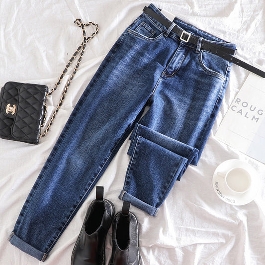 Jeans women's straight and loose high waist nine points retro ancient pants children's net red 2021 spring autumn new wholesale